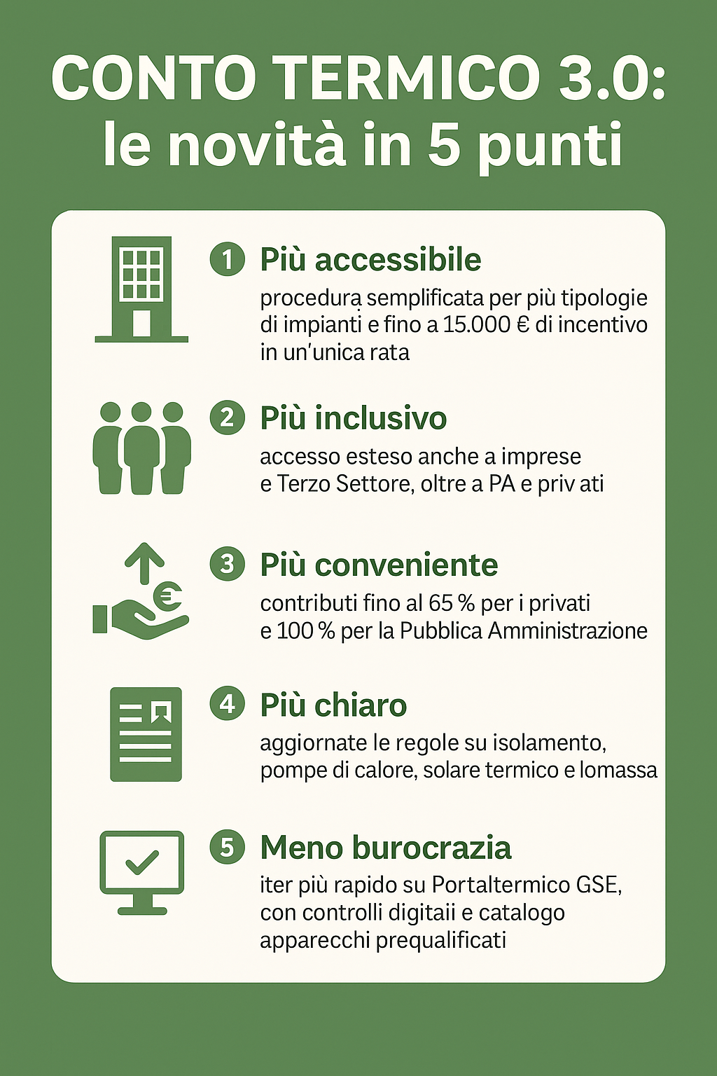 Il Conto Termico 3.0 incentiva gli interventi di piccole dimensioni per: