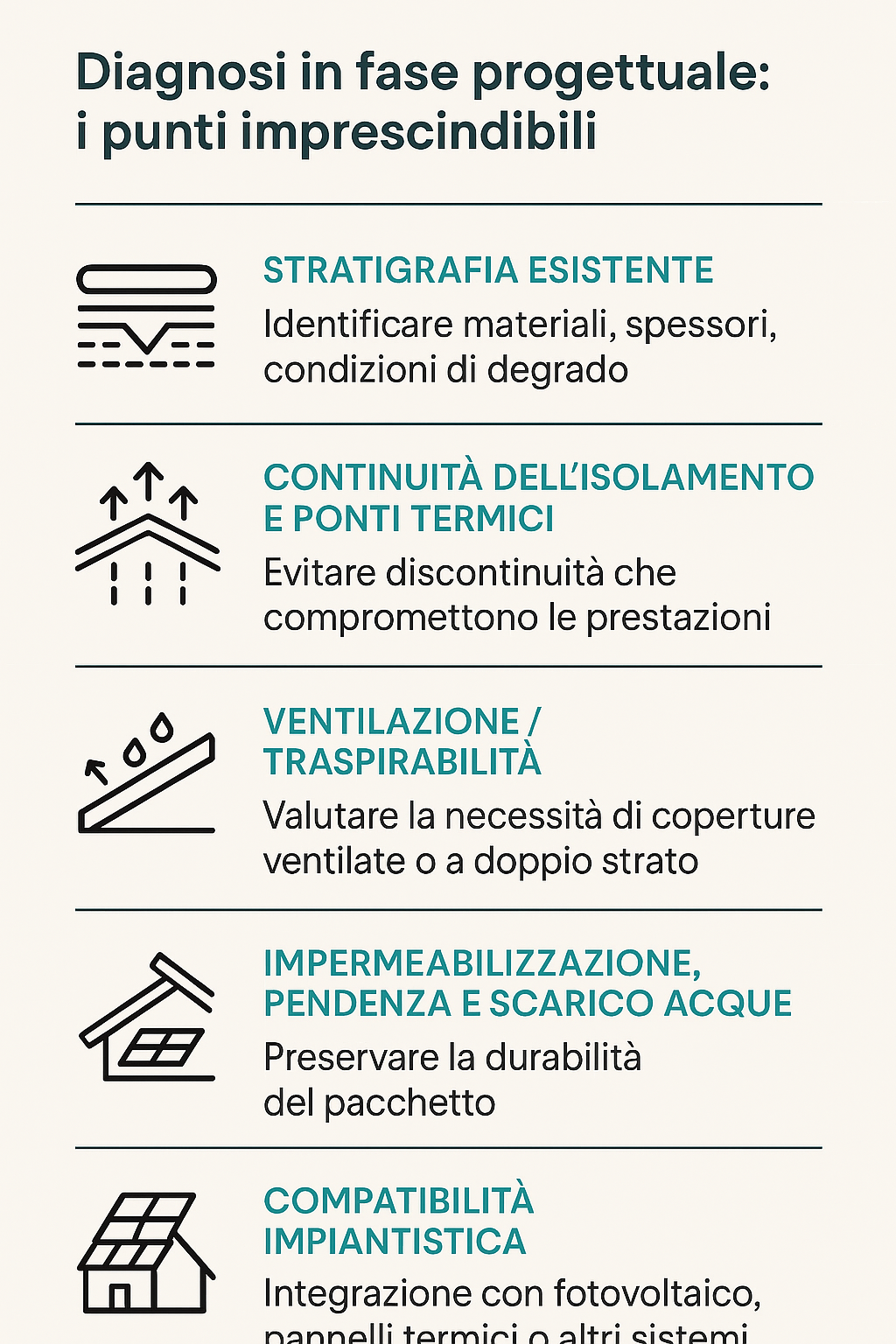 - Stratigrafia esistente – Individuare i materiali presenti, valutarne lo stato e la compatibilità con i nuovi sistemi isolanti.